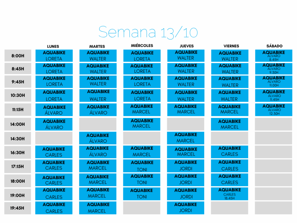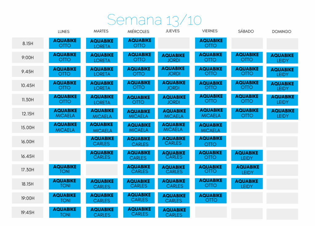 Son clases de 45 minutos, con plazas limitadas, aptas y accesibles para todos los niveles. Contamos con un equipo profesional que acompaña en todo momento la actividad para ayudar a alcanzar los objetivos. Los ejercicios se realizan dentro del agua y se trabaja el cuerpo de forma completa: brazos, espalda, abdominales, glúteos, muslos. Nada queda sin mover.